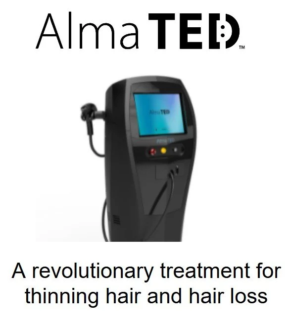 Alma TED is a device for sound wave transmission of growth factors which then leads to hair growth. These growth factors increase blood supply to the hair follicle and by increasing the thickness of the hair shaft. This approach is low risk, natural and effective.